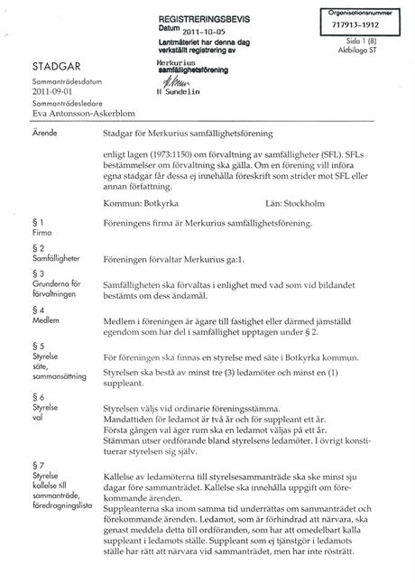 Stadgar. (Klicka på bilden för att få upp alla 8 sidor)